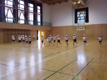 体力テストのシャトルランを,3年生といっしょに行いました。