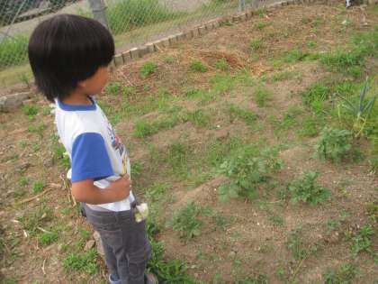 ひかり学級で育てている野菜たちがどんどん成長しています。キュウリやゴーヤの葉っぱは大きくなり,6年生と植えたジャガイモも立派な芽が出てきました。収穫まで観察と世話をしっかりしていきたいと思います。