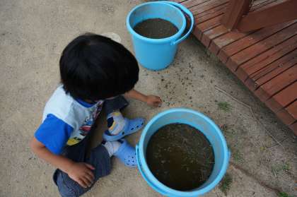 なんとなく、バケツを動かしてみたらびっくり!大量のダンゴムシがうじゃうじゃしていました。100匹くらいいそうです。よく見ると、ほかの虫も大量にいます。気になって他のバケツやプランターを動かしてみると、そのしたにもびっしり!!