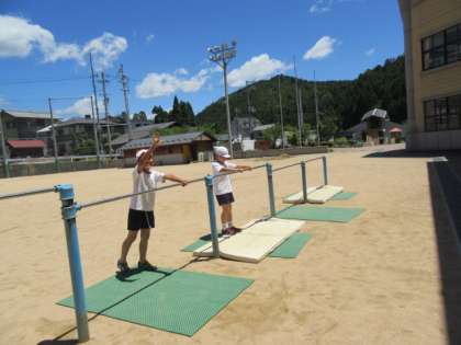 鉄棒の連続技の発表会をしました。今回の学習でできる技が増えた子がたくさんいました!どの子も一生懸命取り組んでいました。