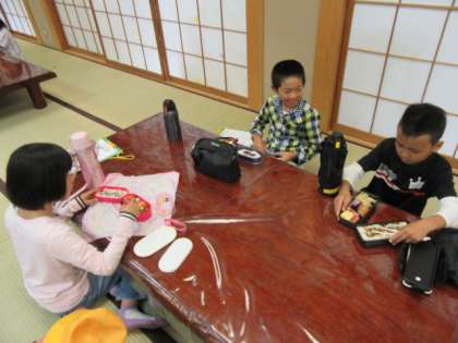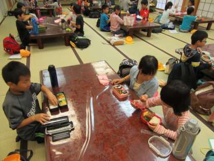 高倉小学校のお部屋をお借りして,お弁当タイムです!
