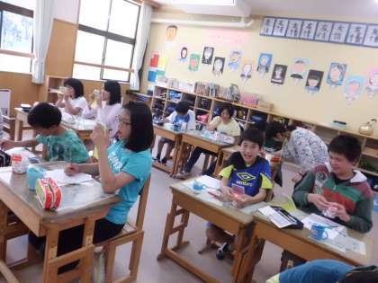 先週,歯と口の健康週間の取組として歯みがき指導を行いました。自分の歯みがきは上手にできているか歯垢染め出しをして確かめました。正しくていねいに歯みがきをして,歯や歯肉など口の健康を守っていきたいですね。