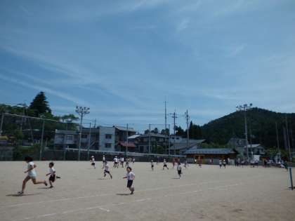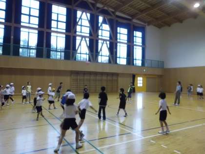 6年生が中心となって,「色別(たてわりチーム)遊び」を行いました。赤チームは「ドッジボール」を,青組と黄組は合同で「けいどろ」をして遊びました。同じ色のチームの人たちと仲よく遊ぶ姿が見られてよかったです。