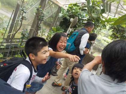 展示学習では,空気砲のおもちゃで遊んだり,色々な生き物を触る体験をしたりして楽しみました。チョウの館では,きれいなチョウを間近に見ることができました。