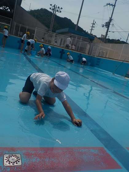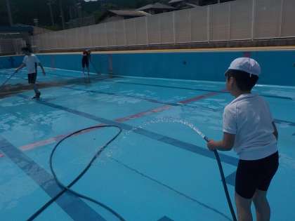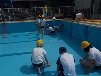 5・6年生でプール清掃をしました。タワシやブラシを使ってみんなで協力して掃除をしました。きれいになったプールで学習するのが楽しみです。
