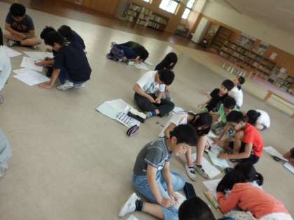 5・6年生合同で,たてわり掃除に向けての打ち合わせを行いました。そうじ班ごとに場所,道具,やり方などについて確かめ,役割分担を考えました。各そうじ場所担当の先生との確認を進めています。