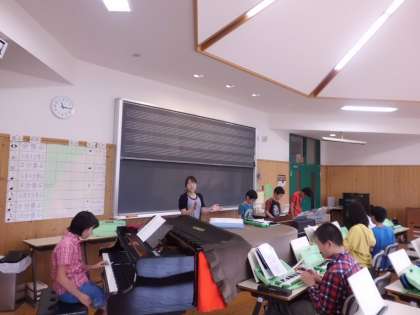 リコーダー,鉄琴,低音,それぞれのパートを練習した後,順番に楽器を使って合奏をしました。