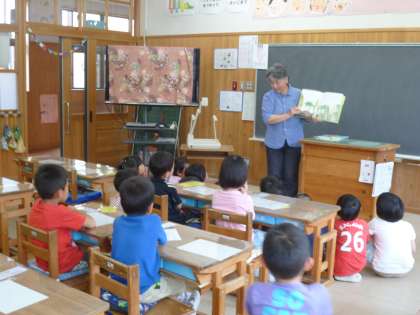朝読書の時間に「絵本だいすき!京北お話の会」の細見先生が読み語りをしてくださいました。“ぼくのだ!わたしのよ!”“さかなはさかな”の2冊でした。レオ=レオニさんの世界に引き込まれていた子どもたちでした。