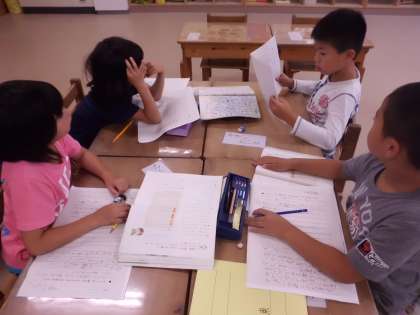 スイミーを読んで,心に残った場面を選び,感想文を書きました。なぜ選んだのかしっかりとわけを書きました。最後には班で読み合い,良いところをほめ,直すべきところを指摘し合いながら学習していました。