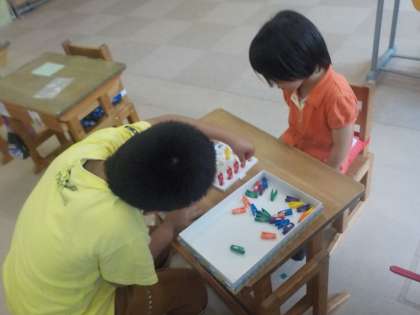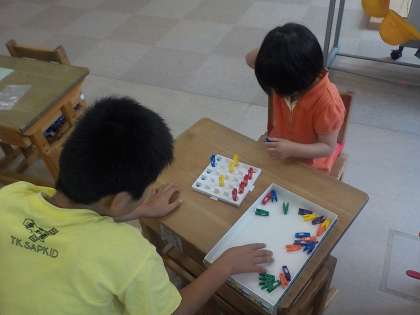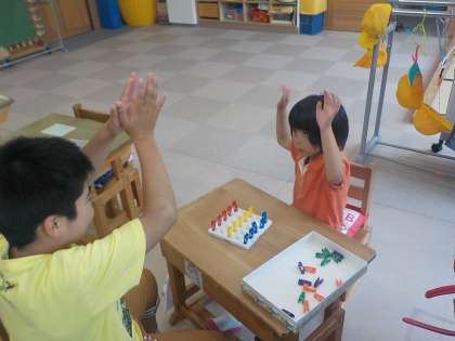 2人で色合わせゲームをしました。順番を守りながら協力して作業を進めるとあっという間に完成して,集中して繰り返し取り組む姿が見られました。