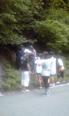 狭間峠到着。マンガン坑の空気坑で涼みます