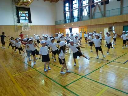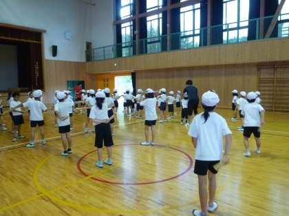 運動会に向けて,1・2・3年生合同での練習を進めているところです。暑い中ですが,新しい動きを覚えようと子どもたちは力いっぱい頑張っています。