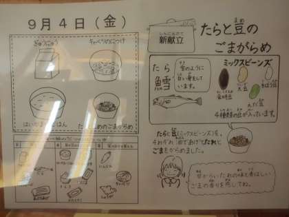新献立の「たらと豆のごまがらめ」は