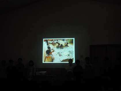 今日の朝会は4年生が担当,7月に行ったみさきの家の宿泊学習について発表しました。