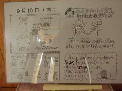 今日の給食のには季節の和菓子「おはぎ」がありました。