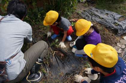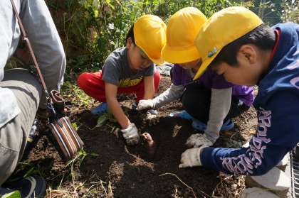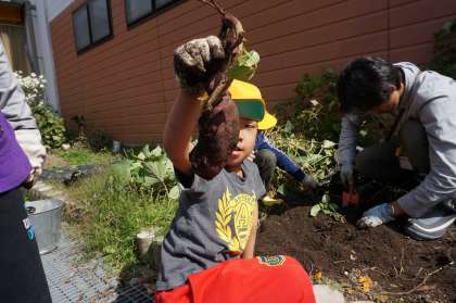 今日はひかり学級の畑のさつまいもをとりました。昨日JAの方と一緒にいもほりしたことを思い出して,やさしく土をほっていきました。