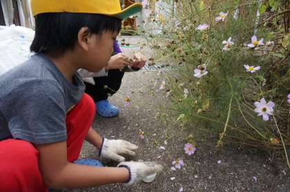 コスモスの種とりをしました。きれいな花が種になると,黒いトゲトゲになっていることに気がつきました。手で採ろうと触るとポロポロ落ちてしまったので,お皿を下に置きながらそっと種を採りました。「これをまた植えたら来年きれいに咲くかな?」と考えながら,秋の訪れを感じていました。