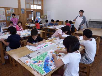 取り組んでいたお話の絵の仕上げをしました。素敵な形や色が画用紙いっぱいに広がっていて,見ていてとてもワクワクするような作品ばかりです。教室に飾るのが楽しみです。