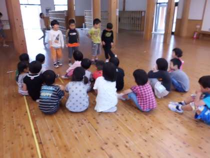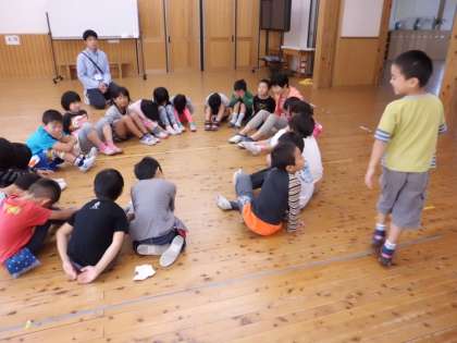 今日の20分休みに,みんなあそびで“ハンカチ落とし”をしました。みんなで楽しく遊ぶことができ,子どもたちは生き生きした表情をしていました。