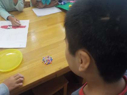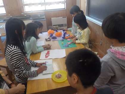 手芸工作クラブのまとめをしました。クラブの時間に制作をしたものを発表し,感想を伝え合いました。集中して作業し,1つのものを作り上げる喜びをしっかり味わうことができました。クラブの時間だけでなく生活の中でも生かしていければと思います。
