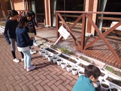 3年生と育てているスイセンが,ずいぶん大きくなりました。