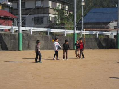 20分休みにみんな遊びで「氷おに」をしました。捕まった友だちを何人かで協力して助けたり,おにも2・3人で囲うようにしたり,工夫して遊びを行っていました。