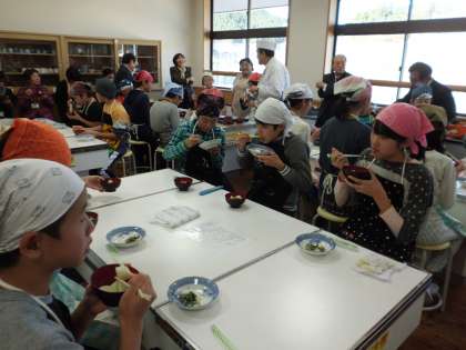 「日本料理に学ぶ食育カリキュラム」の取組で,京北第一・第二・第三小学校の6年生が『草喰なかひがし』のご主人・中東様より,だしの旨味や食材のおいしさについて学びました。日本料理(和食)の魅力を感じられる貴重な体験ができました。