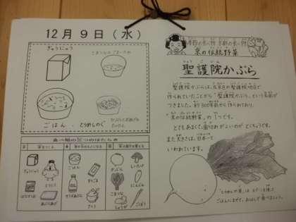 冬が旬の野菜,かぶらを使用した献立です。
