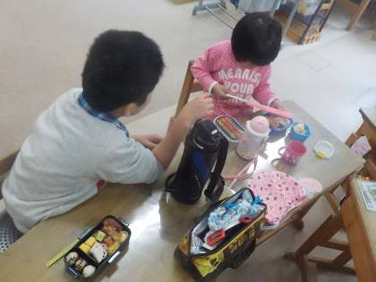 1月7日の「弁当の日」の取組では,お家の人と一緒にお弁当作りに挑戦しました。「このおかずはぼくが作ったよ」と嬉しそうにしながらお弁当を食べていました。