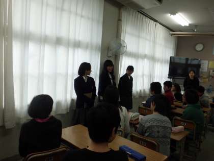 4月から入学することになる周山中学校へ行き,数学の授業体験や部活動見学をしてきました。生徒会本部委員の人から中学校生活について話を聞くこともできました。中学校への夢が広がりました。