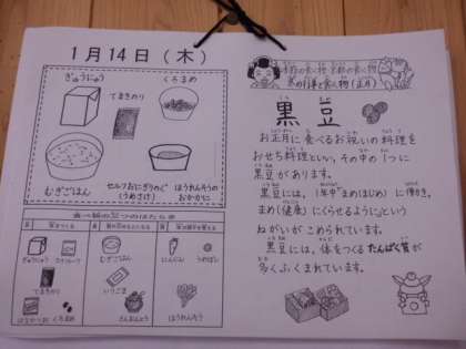 「黒豆」はまめ(まじめ)に働き,まめ(健康)に暮らせますようにという願いが込められています。