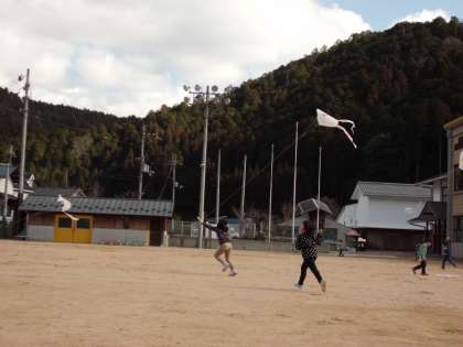 図画工作科でつくった「ぐにゃぐにゃだこ」で凧あげをしました。青空に高くあがる凧。子どもたちは大歓声を上げながら,楽しんで活動をしていました。