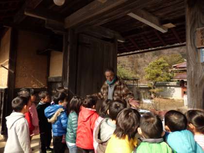 国語科で学んだ「たぬきの糸車」の発展学習を行いました。京北第二小学校区にお住まいの河原林様にご協力いただき,糸車や茅葺,土間などを実際に見たり,いろいろなお話を聞いたりしました。囲炉裏を囲んで,「たぬきの糸車」の音読をさせてもらうこともでき,子どもたちはとても喜んでいました。河原林様,ありがとうございました。