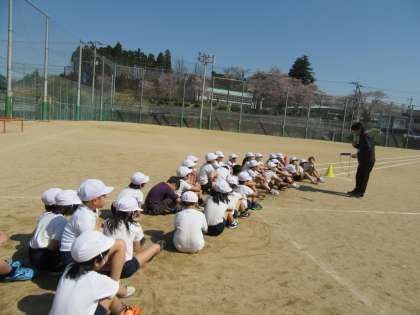 体育の時間に50m走のタイムをはかりました。4年生と一緒ということで,4年生の走りを見ながら,「はやいな。」と刺激を受けている様子もありました。