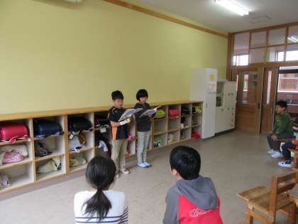 詩の音読をペアで発表しました。読み方を工夫し,詩を味わいました。
