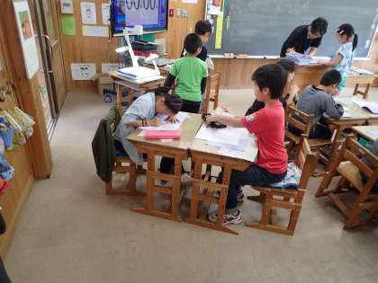 学校全体で「本読み計算」に取り組んでいます。2人組になって一人が問題を言い,もう一人が答えを言います。前回よりも「できた」という子がどんどん増え,子ども達のやる気が出ています。