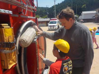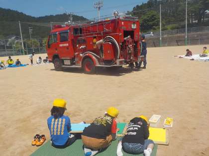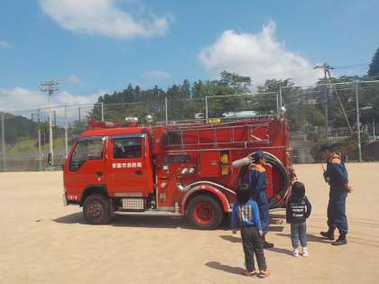 5月17日に消防車が学校にやってきました。近くで見る消防車は迫力満点でした。見て感じたことをパスを使って画面いっぱいに表現しました。