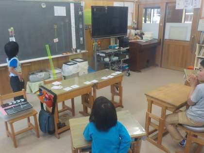 国語に時間では覚えた漢字をカードを見ながら素早く言ったり,漢字を使ってお話を想像して作ったりすることができました。