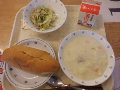 給食で初めて国内産小麦100%のパンが登場しました。