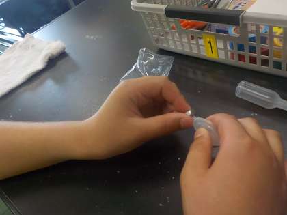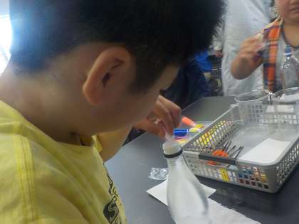 高学年は,実験学習をしました。ペットボトルとプラスチック容器,ボルトなど身近な物を使って「浮沈子」を作りました。自分の思い通りに浮いたり沈んだりするおもちゃができて嬉しくなりました。
