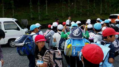 あうる京北につきました。全員元気です。晴れ間も、見えてきました。