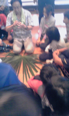 シュロの葉を使ってバッタつくりを教えて頂きました。