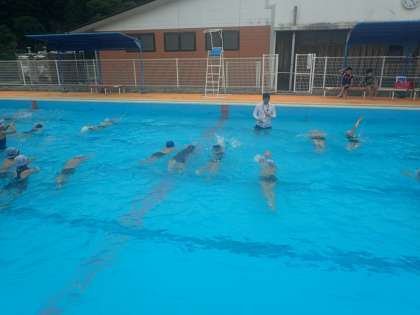 7月8日(金)水泳学習をしました。クロールでの手や足の使い方を学習しました。力をぬいて泳ぐことができるようになってきました。