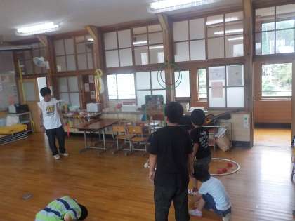 学活の時間には,自分たちで話し合って決めた遊びをしました。今回は,教室で玉入れをしたり体育館でボールころがしゲームと鬼ごっこをしたりして体をたくさん動かしました。