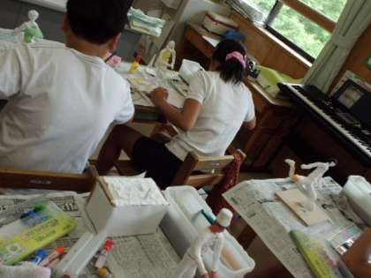 図画工作科で取り組んでいる「12年後のわたし」の続きを行いました。骨組みにつけた粘土に,絵の具で色をぬりました。とてもすてきに仕上がってきました。来週完成予定です。