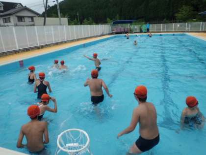 学校に戻ってきてからプールへ入りました。自分でめあてをもって泳いだ後,みんなで楽しく水球をしました。楽しい時間が過ごせたようです。