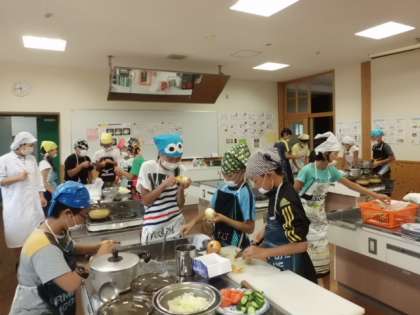 夕食は,「カレーライス」と「ホットサラダ」でした。みんなで上手に分担しながらテキパキと調理することができました。自分たちで作ったカレーはとてもおいしくて,おかわりする子もたくさんいました。