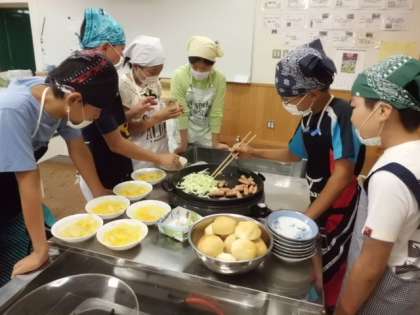 「ホットドッグ」をみんなで作りました。ホットプレートで上手にパンやキャベツ,ウインナーを焼き,それを盛り付けて,おいしく食べました。