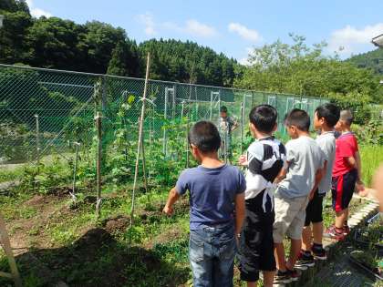 ツルレイシ,ヘチマの観察をしました。暑い毎日で,大きく伸びた姿に驚いていました。