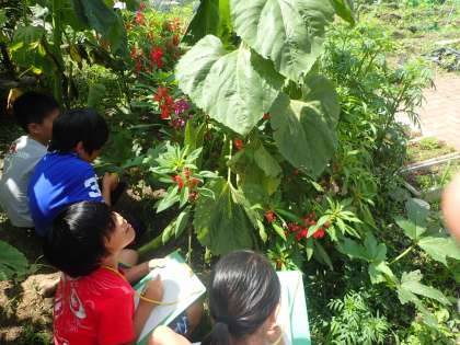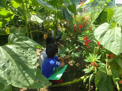 ひまわり,ホウセンカ,オクラの観察をしました。